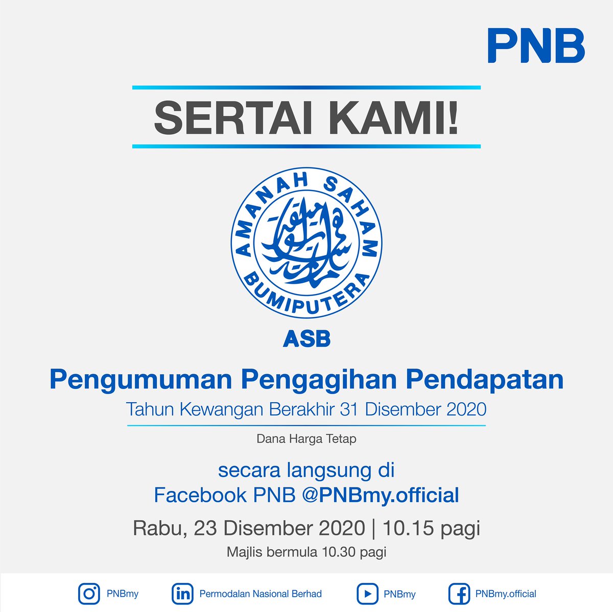Tarikh pengumuman bonus & dividen tahun 2020. Permodalan nasional berhad (pnb) hari ini mengumumkan pengagihan pendapatan sebanyak 5.00 sen seunit dan bonus 0.50 sen seunit bagi skim amanah saham bumiputera (asb) untuk tahun. Ingin dapat passive income dari saham? Ini adalah tarikh bila duit dividen dan asb 2019 boleh dikeluarkan. Kita semua sedang berada di moment ketika hampir semua saham unggulan di bursa turun.