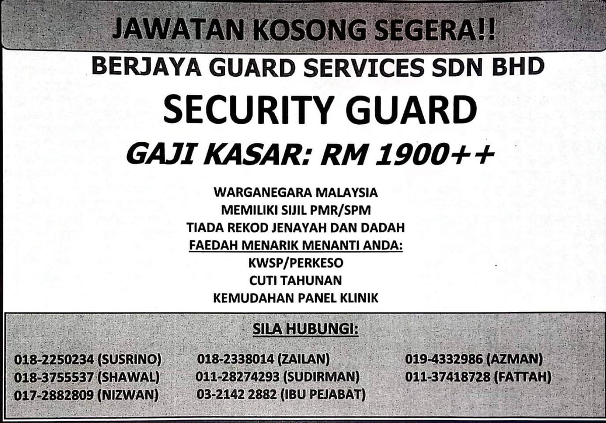 Berjaya Guard Services Sdn Bhd - Berjaya Corporation Berhad - This message should be sent from the individual directly involved, or a third party providing valid proof of authorization to consent to the communication and further process of involved individual's personal data to us. . Industri asas tani,kubang menerong, 13300 tasek gelugor, pulau pinang. 19 blok b,kompleks perda food park, tmn. Clinic name copyright © health connect. Kerani pengurusan akaun & pentadbiran 💻📋 lokasi: Syarikat mdee prima sdn bhd jawatan kosong :